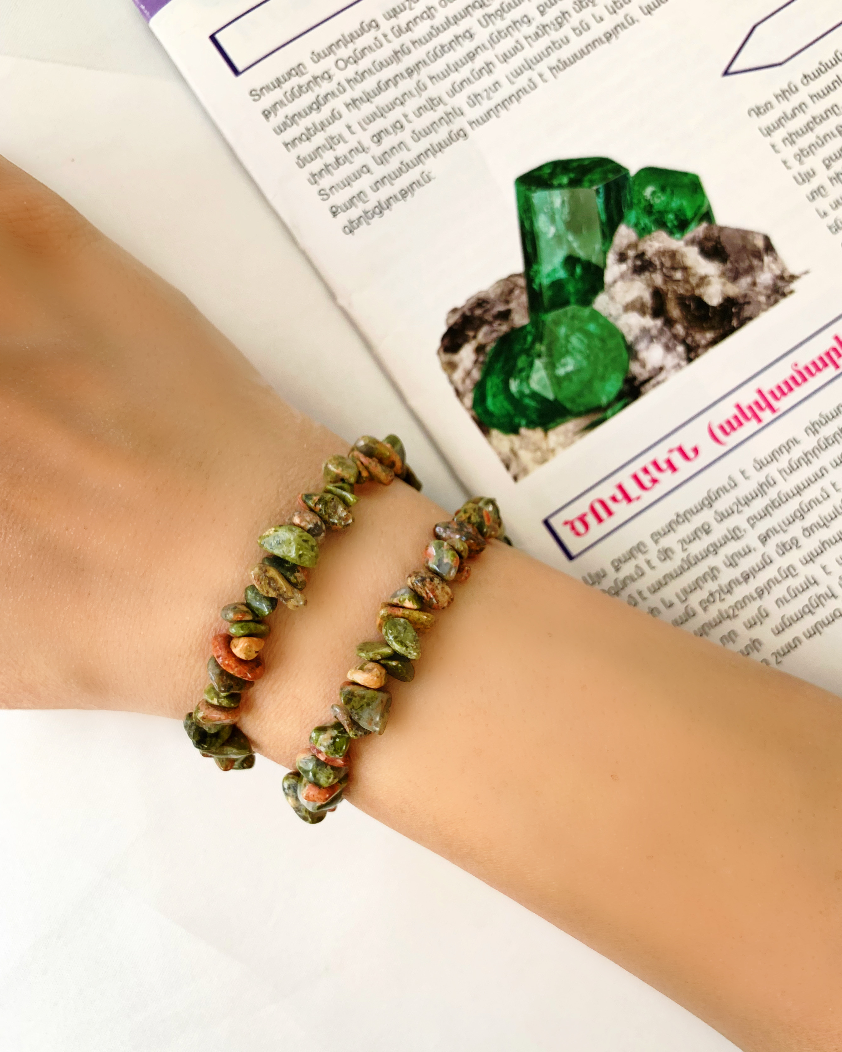 دستهبندی: دستبندنوع سنگ: اوناکیتسایز: فرینوع تراش: چیپسیخواص سنگ: کنترل خشم و غم_تعادل عاطفی_پاکسازی و شارژ چاکراه قلب